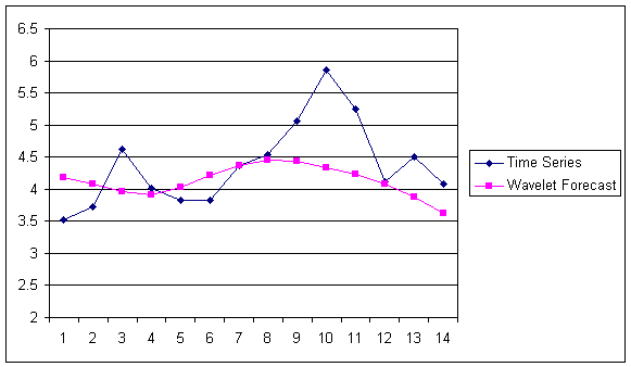 this model is periodic and with a linear trend, a situation that is very typical for a lot of businesses and also for the financial markets. On this simple model we calculated a forecast using the three Holt Winter’s methods, the two Series Decomposition methods and IPredict’s unique Wavelet Forecast method. Finally we computed the Mean Absolute Percent Error all the predictions.